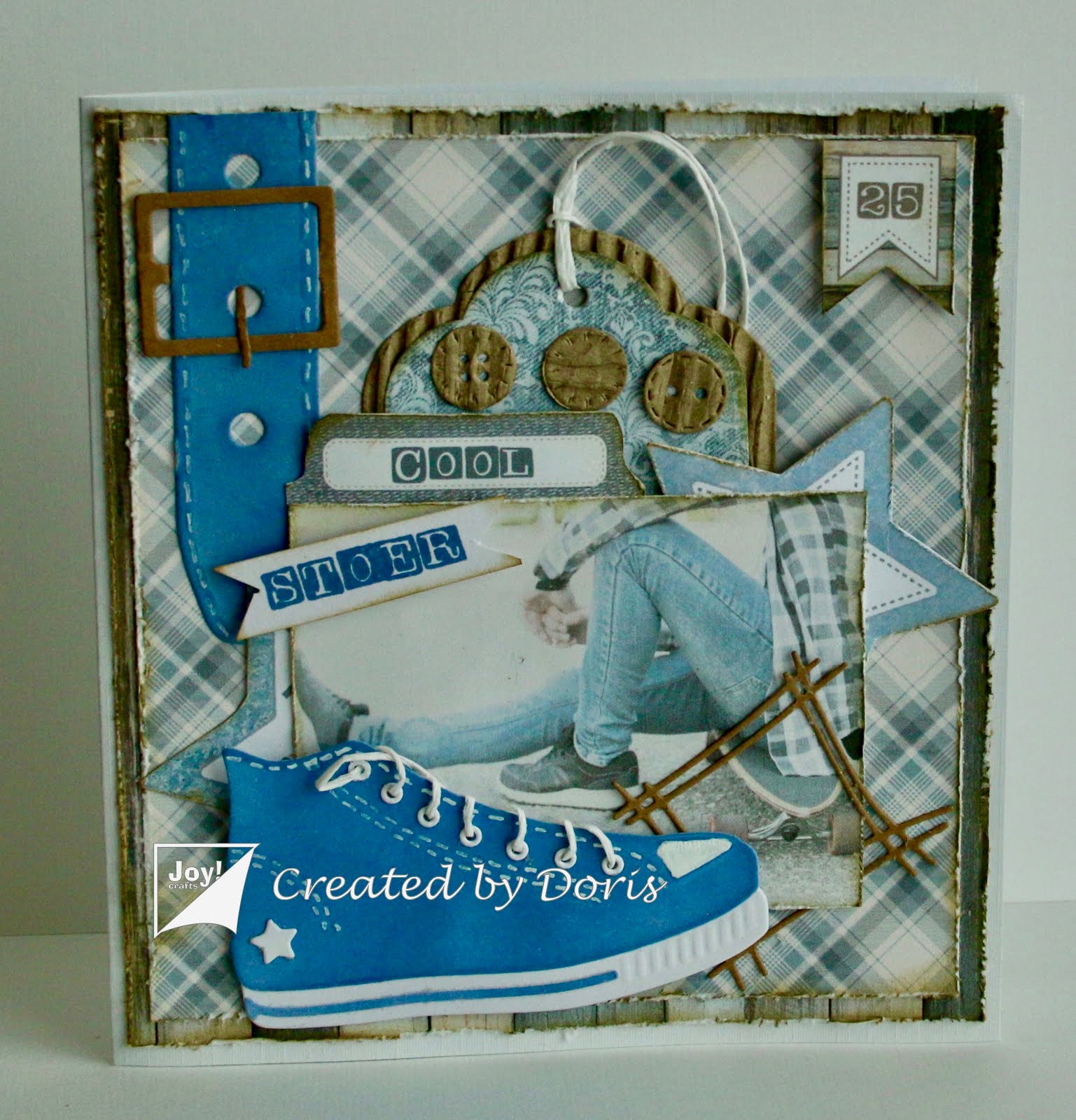 Wat zijn die sneakers gaaf hè! Heb ze ook aangeschaft, en hoop ze snel te gebruiken op een kaartje! Helemaal leuk om in het Joy krantje te staan met je prachtige kaartje Doris!